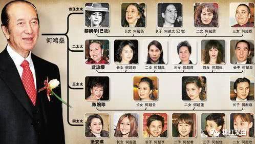 何鸿燊共有四位妻子,17个儿女,简称“四房17杰”。