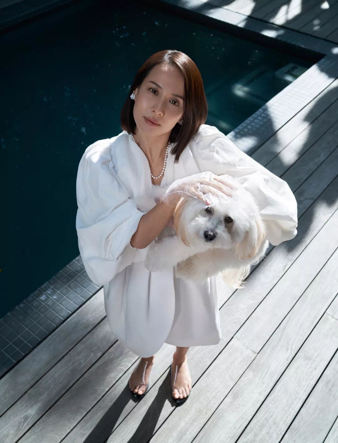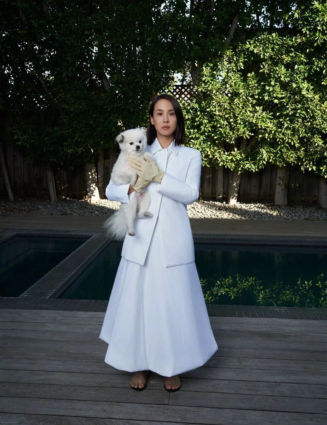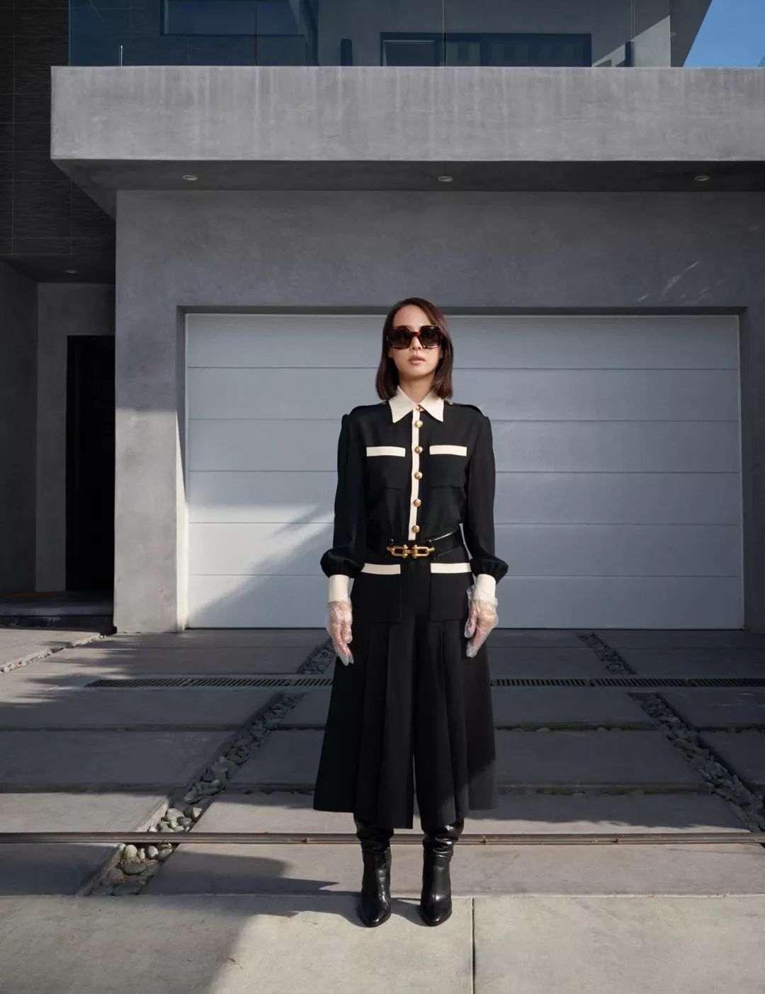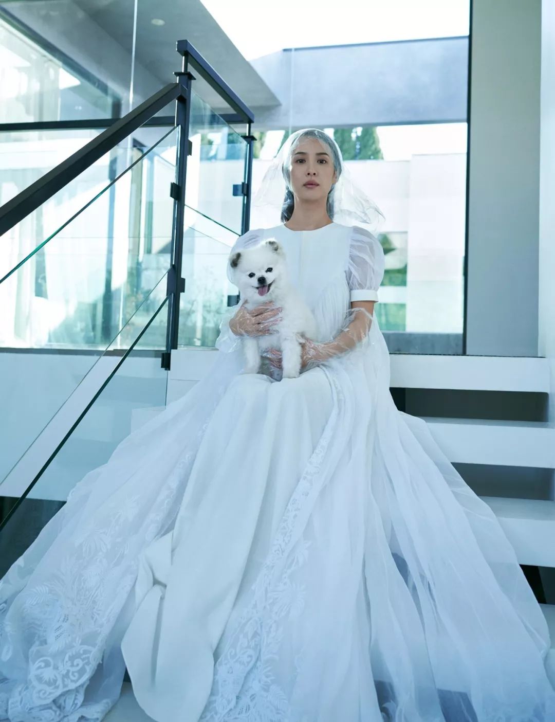 写真中的的赵汝贞仿佛再次置身于《寄生虫》中朴社长家那幢极具后现代感的别墅中。