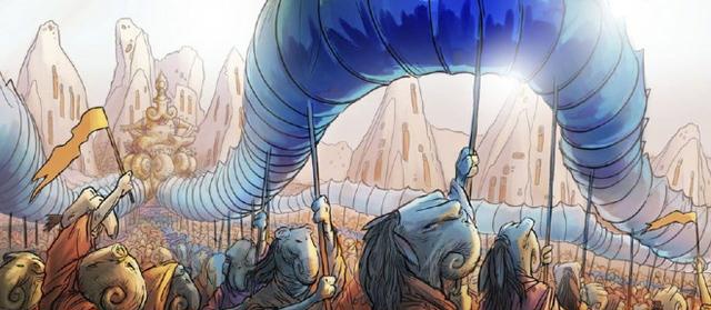《星球大战9:天行者崛起》中,居住在沙漠行星上的外星种族相貌奇特,举行的盛大庆典更是影片中的重头戏。设计图中,这些外星原住民紧密排列在一起,手持的灯笼神似中国舞龙活动。