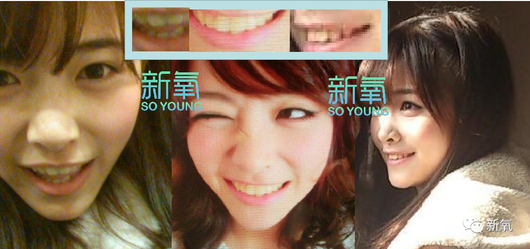以前她的牙齿不整齐,有点外倾,也就是轻微龅牙(下图最右侧)。