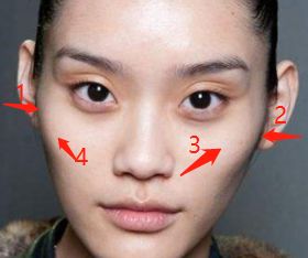 比如奚梦瑶只是颧弓外扩,所以她的面部是图中1、2号位向外,是侧面表现,3、4号位是平的,颧骨并不高,上文鞠婧祎也是这样的。