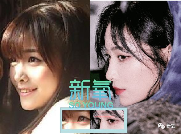 其次,由下面这张对比图也能够看出来许佳琪早期和现在的内眼角形态并没有实质性的差别,距离上有轻微的改变也是因为鼻子的调整而非眼角本身手术(鼻子下面会讲)所以羊倾向于认为她应该没有做过去内眦的手术。