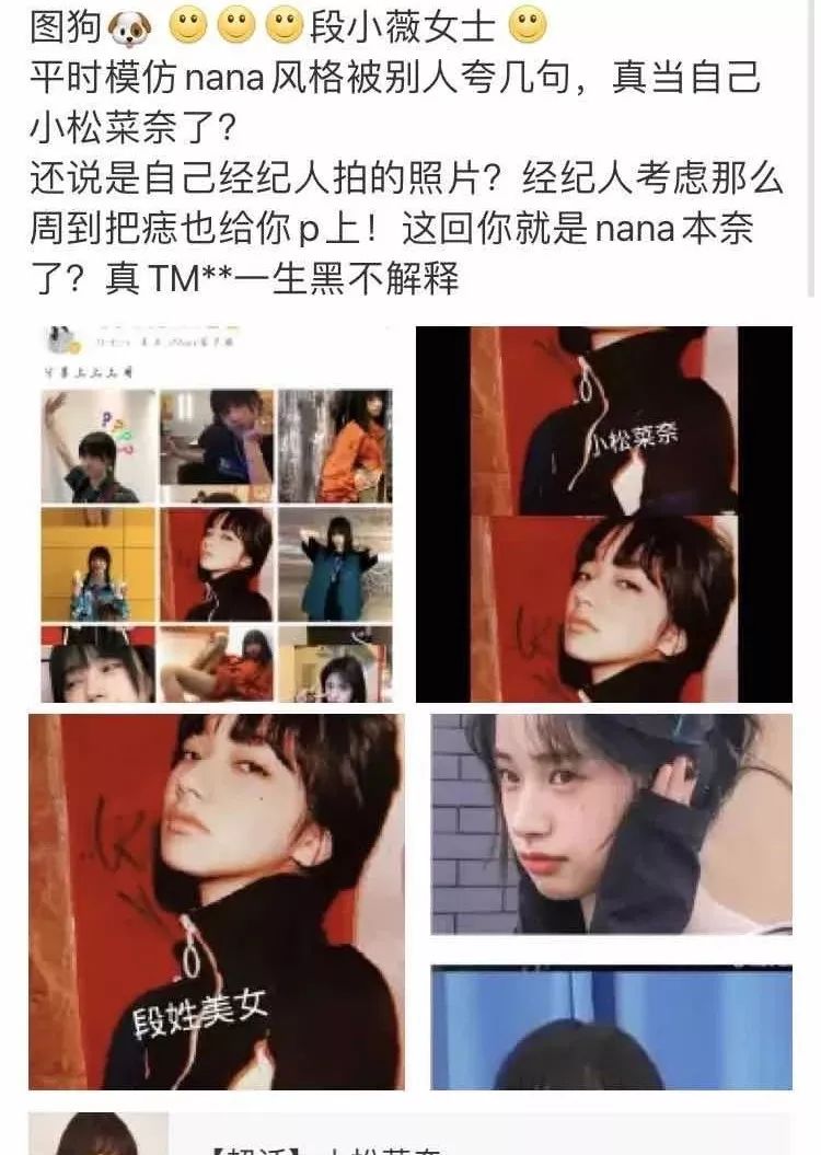还有这个,以像小松菜奈出名,把小松菜奈的照片p了放在自己的自拍里???
