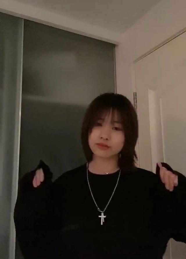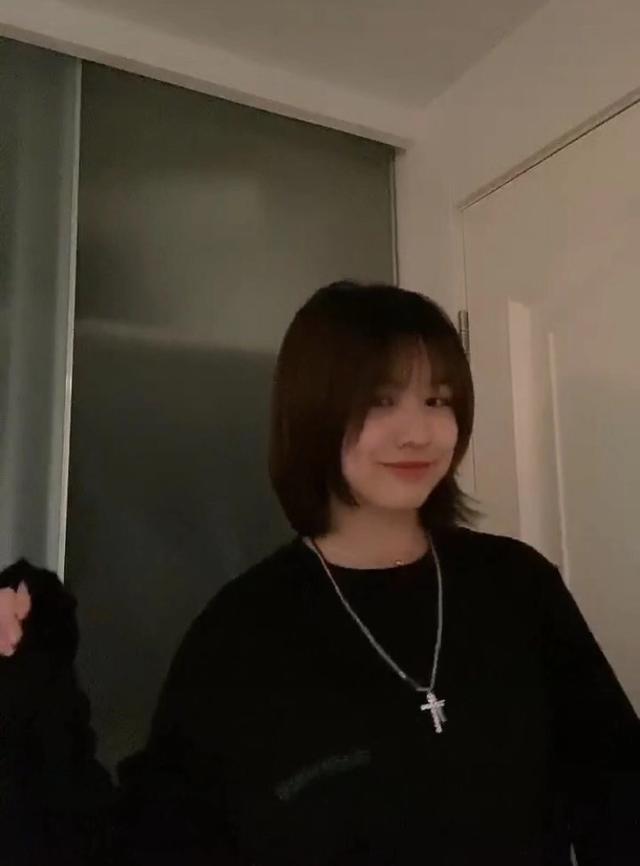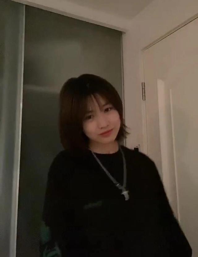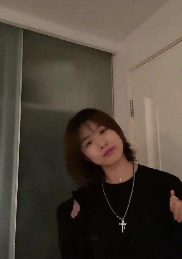 小苹果身穿一件黑色的宽松毛衣,一头短发显得特别清纯,颜值很高,虽然只看到上半身,但能看出身材高挑,完全遗传了葛荟婕的模特基因。