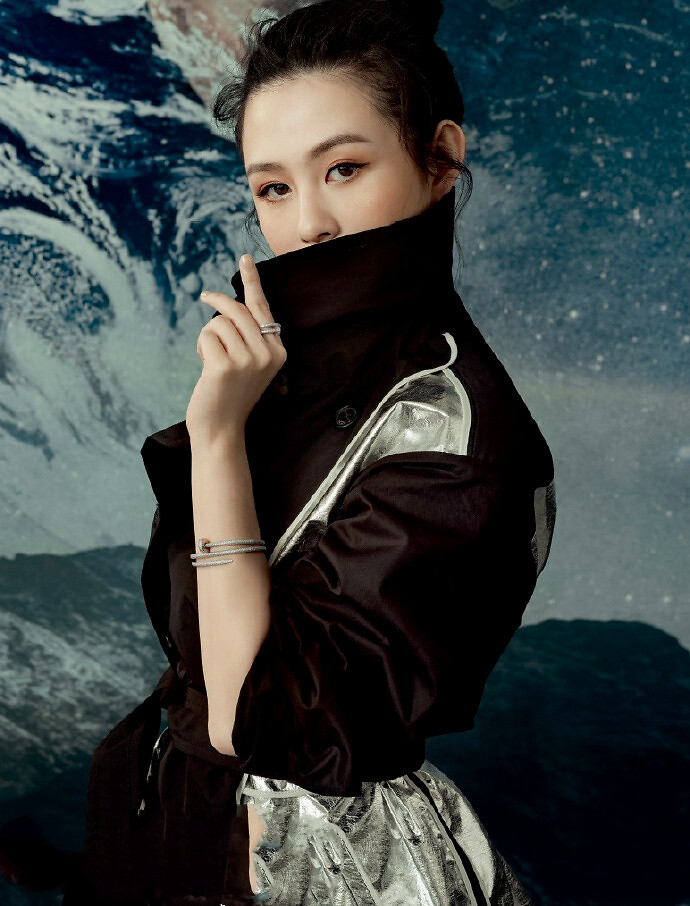 照片中,沈月衣着时尚,妆容精致,造型也非常酷,有种霸气的味道。