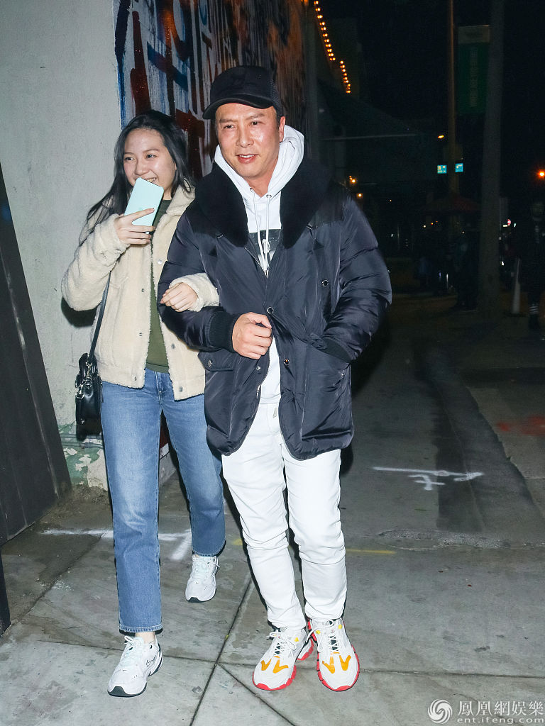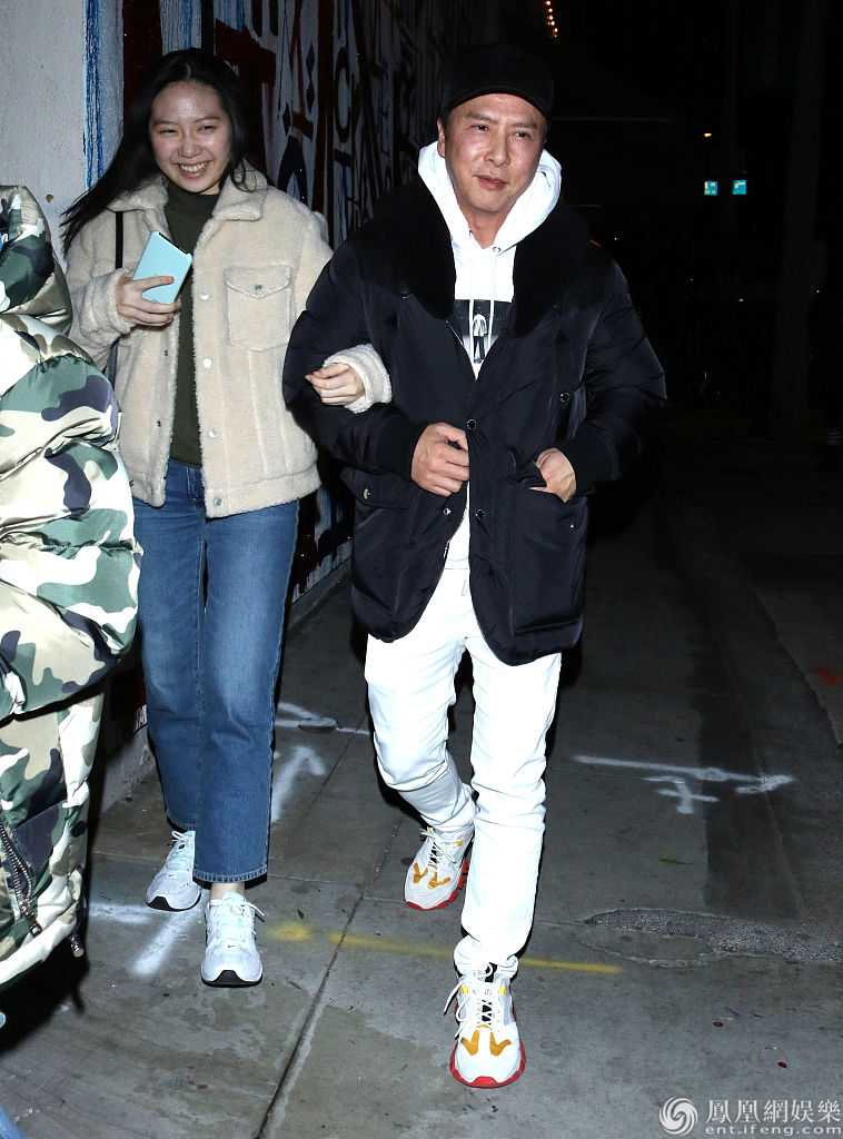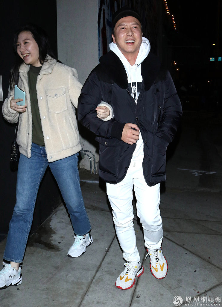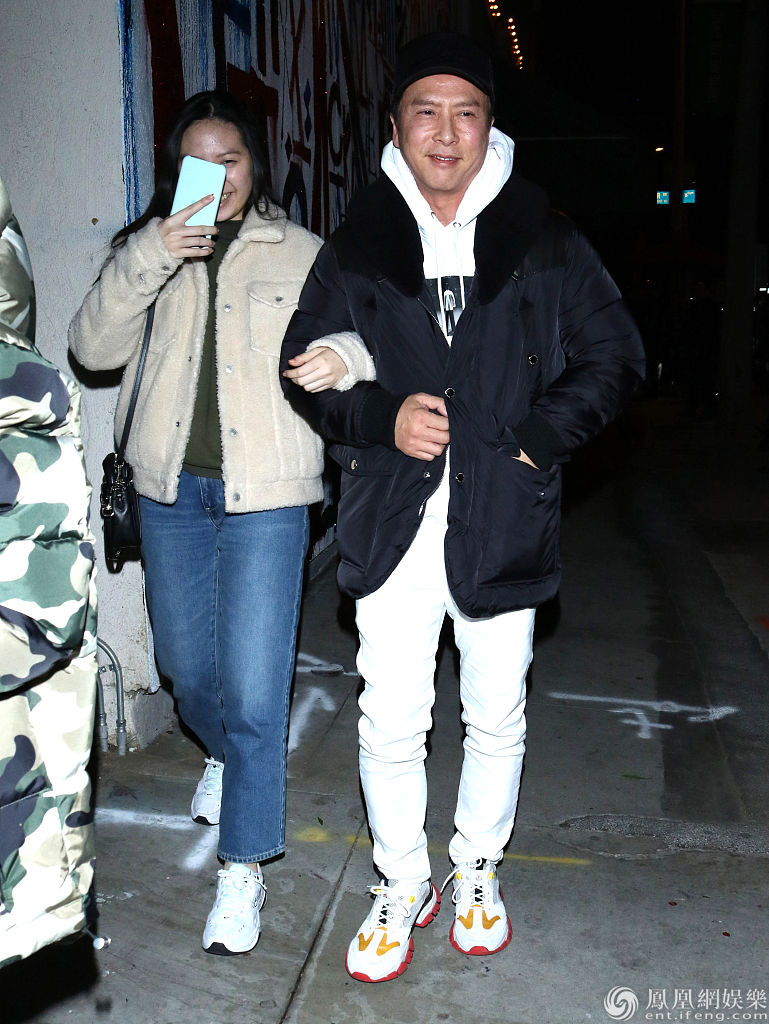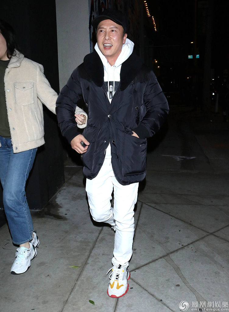 作为武术巨星享誉国内外,在美国夜间低调出行仍被狗仔认出并吸引大批围观和拍摄,甄子丹笑容满面尽显亲和气质。