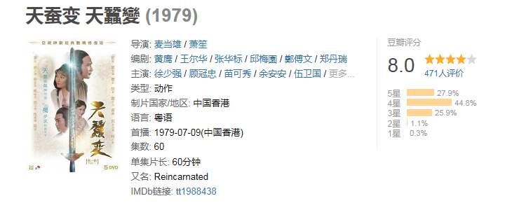 1979年,《天蚕变》创下了当年的收拾神话,也迫使无线电视台转头拍摄了《楚留香》。