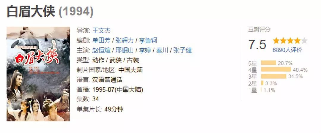 已经记不清是先听的单田芳先生的评书,还是先看的这部电视剧,总之"白眉大侠"虽然不帅,但绝对让人过目不忘,用现在的话说就是长得相当有辨识度。