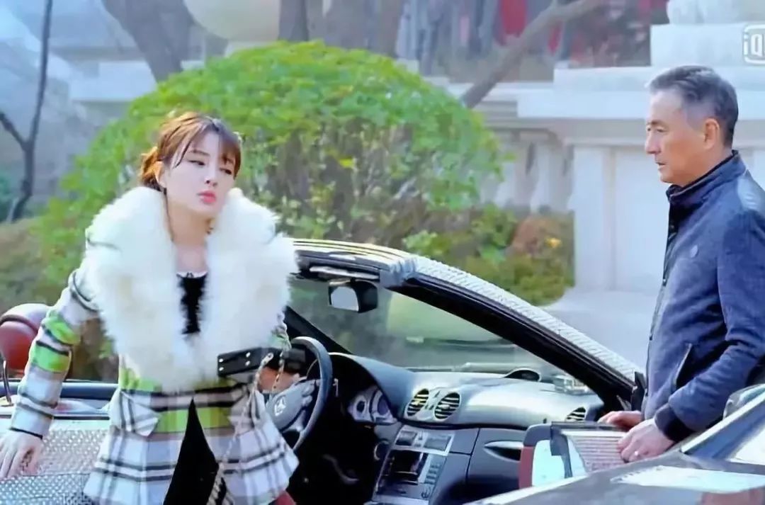 狗啃一样的皮草还要搭配金黄色豪车啦;