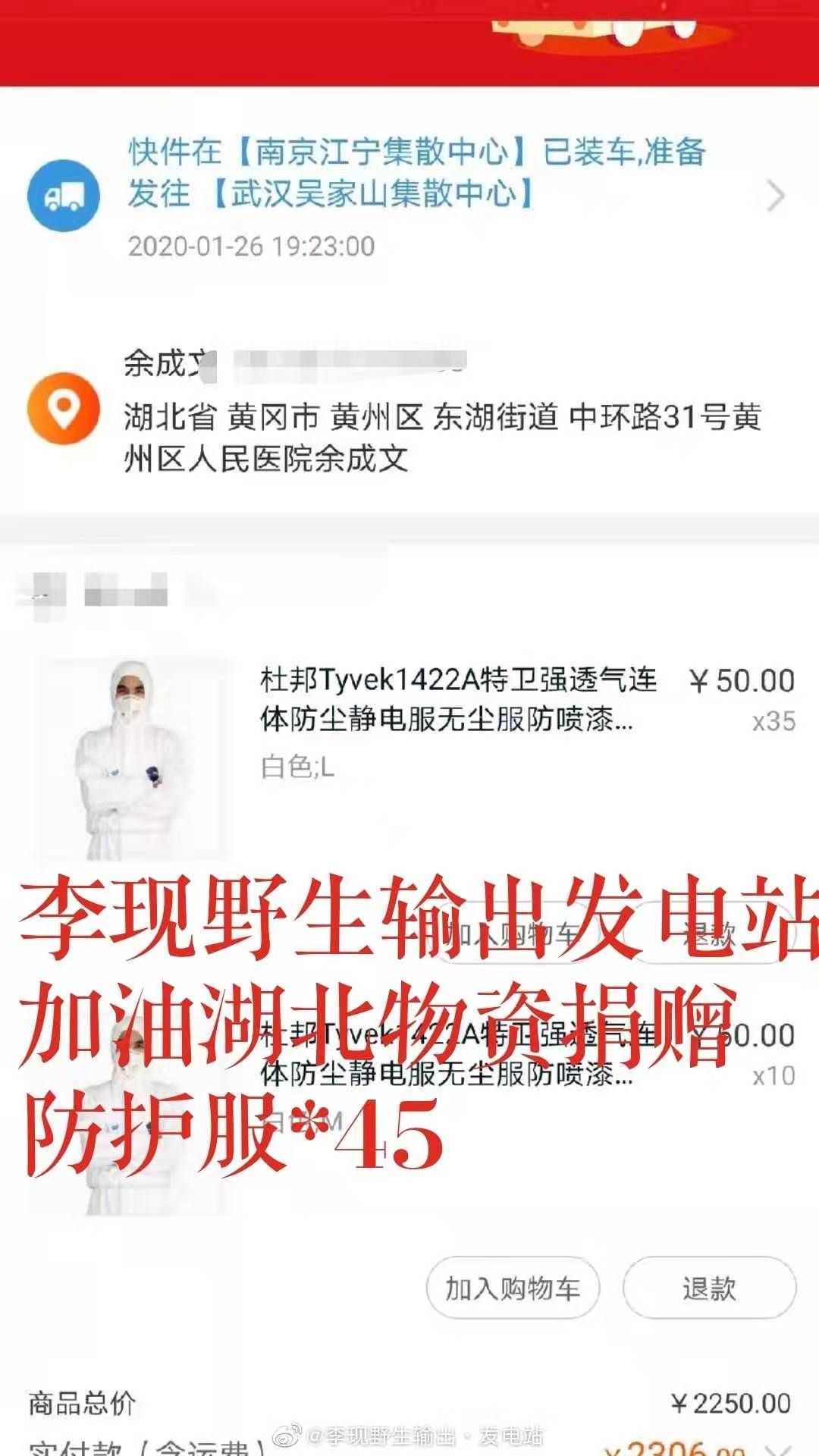 我是疫情下的个体,同时也是身在武汉的粉丝,也想和“李现野生输出·发电站”其他粉丝一起,贡献自己的力量。从大年三十开始,我也加入了找物资的队列中。