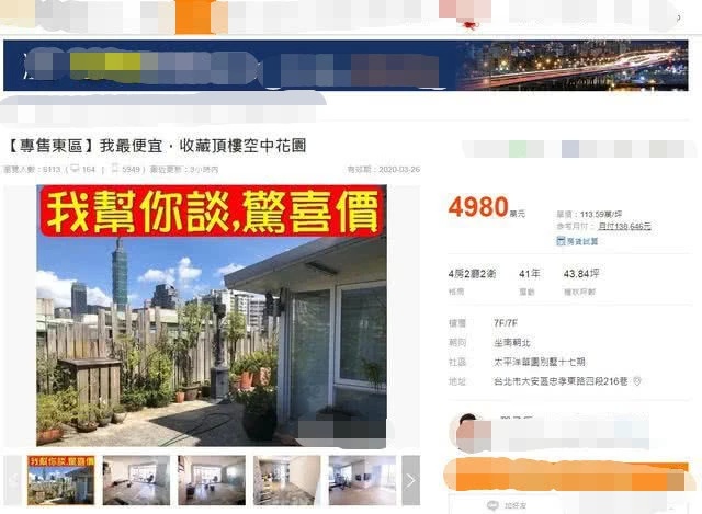 近日,有人在卖房网站看到钮承泽出售东区旧家的信息,开价4980万元台币(约合1100万元人民币)。