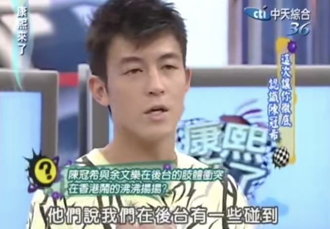 某次颁奖典礼后台,陈冠希和余文乐狭路相逢,因为撞了肩膀而起冲突,媒体还原当时的画面,陈冠希举拳头挑衅,余文乐也不甘示弱,后来陈冠希上《康熙》承认,确实有,但没那么严重。