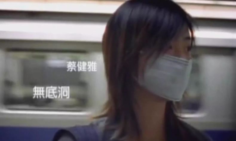 台湾那年,虽然没有香港严重,但依然人心惶惶。《想见你》里面,李子维和他父母打电话,第一句话就是问他戴没戴口罩,而在蔡健雅的《无底洞》MV里,也还原了这一幕,地铁上都蒙着口罩。