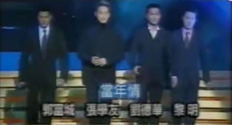 1999年,张学友和黎明宣布退出香港音乐颁奖典礼,不再领奖,意味着四大天王的时代正式结束。而这次的金像奖,四大天王为了张国荣时隔多年再次聚首,清唱了张国荣的经典歌曲《当年情》。