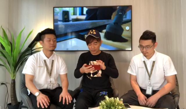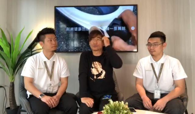 整个直播将近13分钟,一开头吴宗宪就称直播地点是吸尘器的客服中心,画面中他戴着深蓝色棒球帽,一身黑衣坐在中间,旁边坐着两位穿衬衣的工作人员,应该是吸尘器公司的员工。
