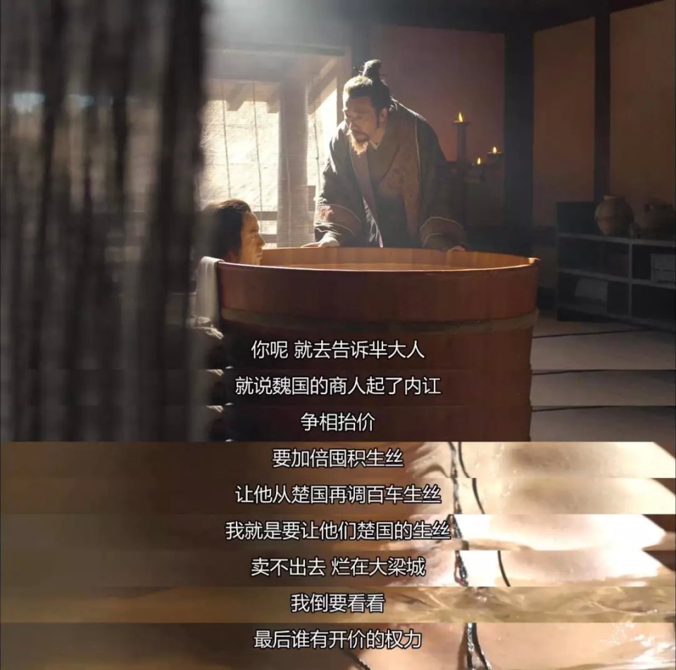 王禅利用生丝不易保存的特性,先是放出魏商抬价囤积生丝的假消息,蒙骗楚商大量输送生丝来魏。