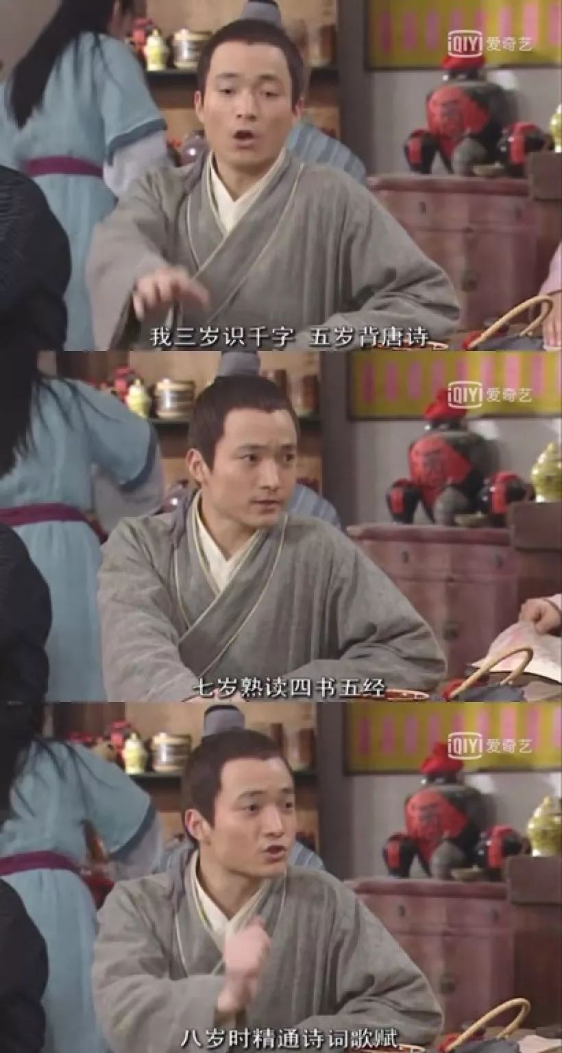 秀才最骄傲的事莫过于:我三岁识千字,五岁背唐诗,七岁熟读四书五经,八岁精通诗词歌赋。