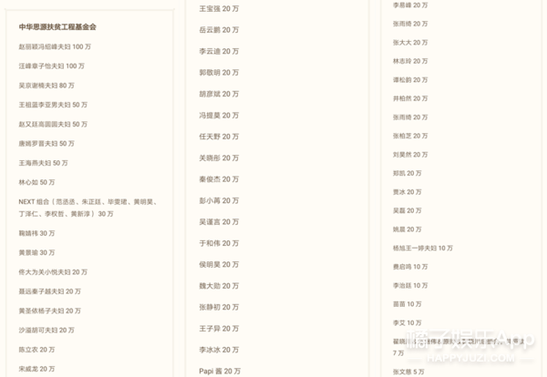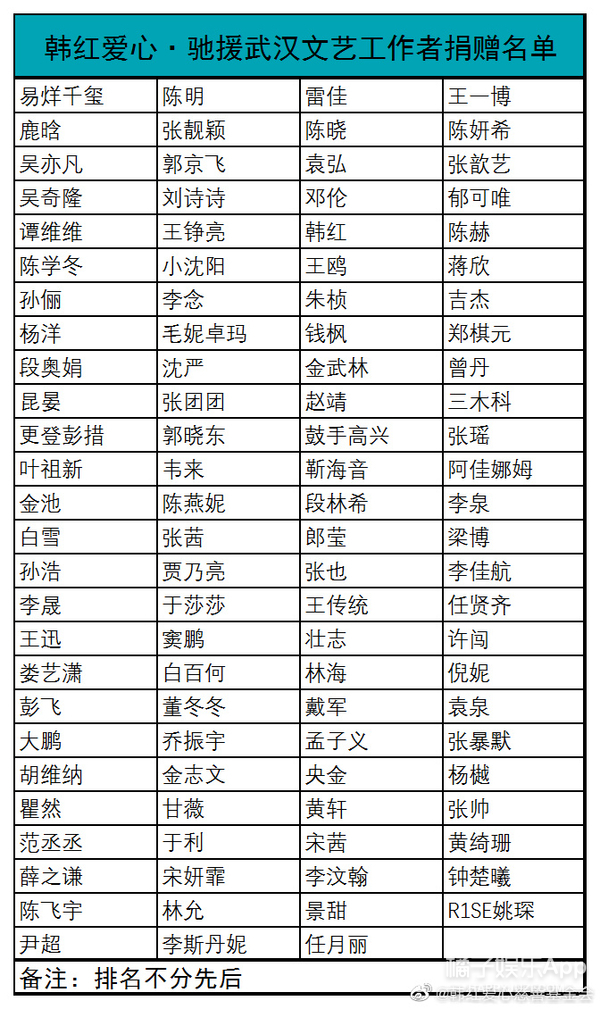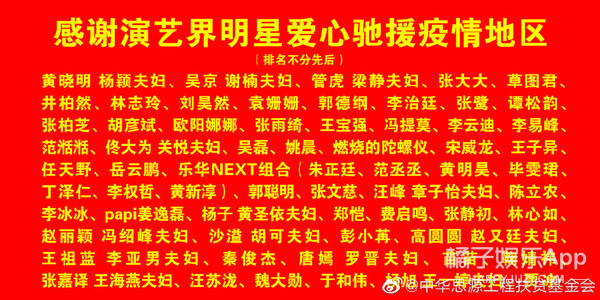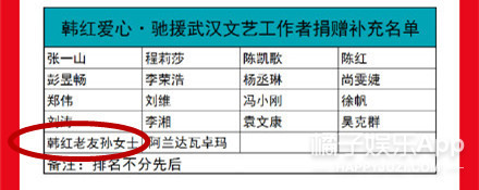 这些只是通过韩红爱心慈善基金会捐赠的一部分艺人名单。