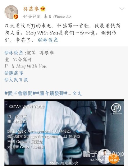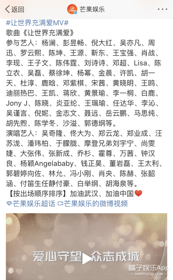 另外还有一首由成龙、王力宏、肖战等18人参与的抗击疫情主题曲,《坚信爱会赢》↓