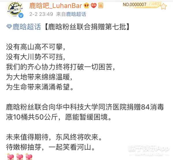 鹿晗粉丝的联合捐赠已经做到了第七批: