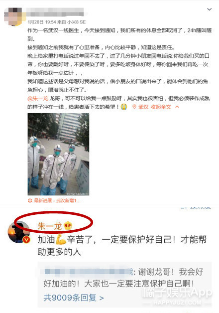 蔡徐坤和朱一龙用点赞和评论的方式鼓励自己的医生粉丝: