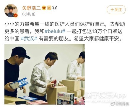 矢野浩二捐了13万个口罩,亲自到线下打包: