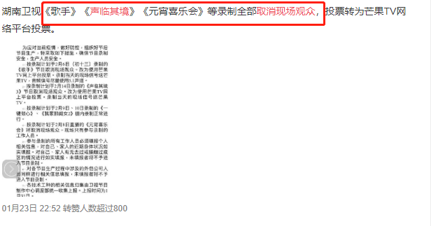 其余如《声临其境3》等未改变播出计划的综艺,出于安全考虑也取消了现场观众,改为网络投票。不过《声临其境3》这类综艺,现场观众存在与否,倒是对节目影响也不大。