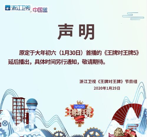 1月28日,广电总局要求全国卫视加强疫情防控报道,减少娱乐性节目。各大卫视随即响应,增加相应新闻节目,并调整部分综艺节目的播出计划。湖南卫视、浙江卫视第一时间延播了《快乐大本营》《王牌对王牌》《新声请指教》《漫游记》《天赐的声音》。其他卫视迅速跟进,也纷纷更改了这段时间综艺的播出计划。