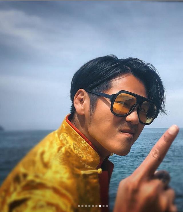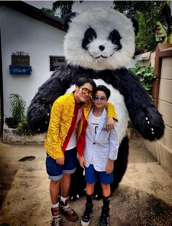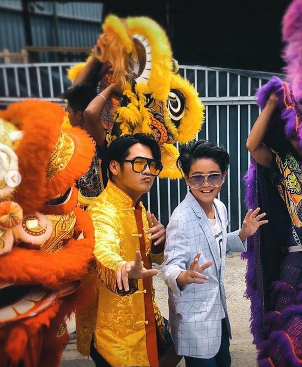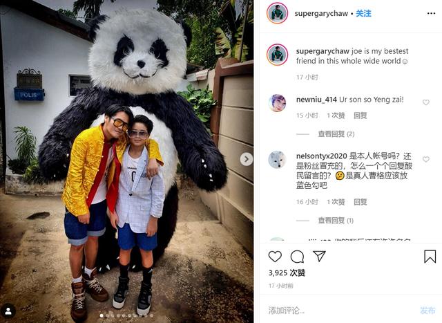 曹格带着儿子一起与舞狮队合影,他们有模有样地摆着功夫pose,曹格噘着嘴,十分反差萌。Joe笑得非常欢乐,两人同框似兄弟多于像父子啊!