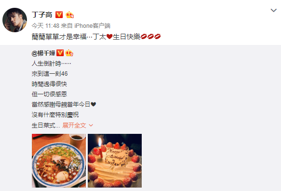 随后,其丈夫丁子高转发动态并配文:“简简单单才是幸福?丁太,生日快乐。”