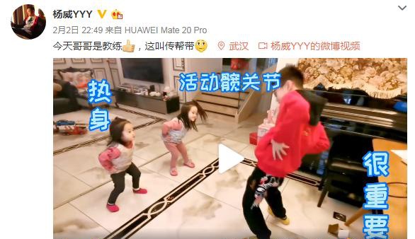 而杨威本人对于哥哥在家中起到的带头作用显然十分满意,发文称"这叫传帮带"。