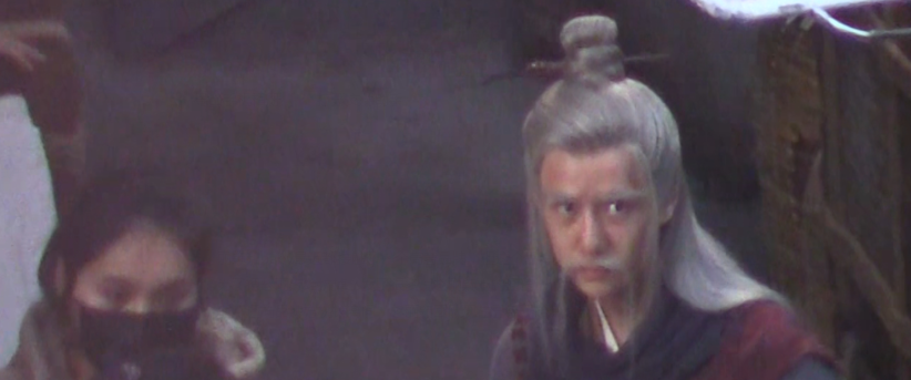 或许是王一博同学对胡子很新鲜,或者感觉胡子不舒服,在中场暂停拍摄补妆期间,王一博伸手抓胡子,似乎在调整胡子黏贴的效果和方向。后来摄影师拍到了王一博抬头看镜头的画面,俨然就是一个老人呀!