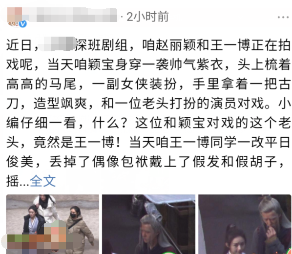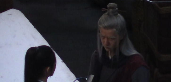 当时赵丽颖正在拍戏,对手是一个头发和胡子都变白的老头,两人面对面演戏。不过,这个所谓的老头并不是别人,而是男主王一博,这是王一博《有翡》中首次曝光老年妆造型啊!你们感受一下,猛一看,确实很像是一个老头呀。