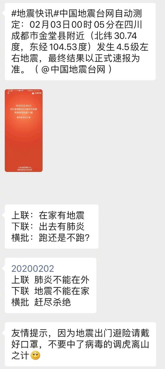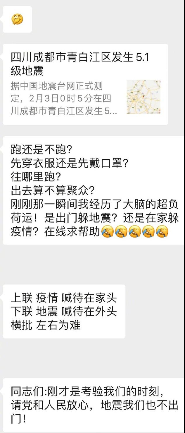 2月3日凌晨,四川成都发生5.1级地震,随后,身为成都人的张靓颖便在社交网上晒出与家人的群聊记录,称本想安抚家人,却在看到家人群聊后表示放心。