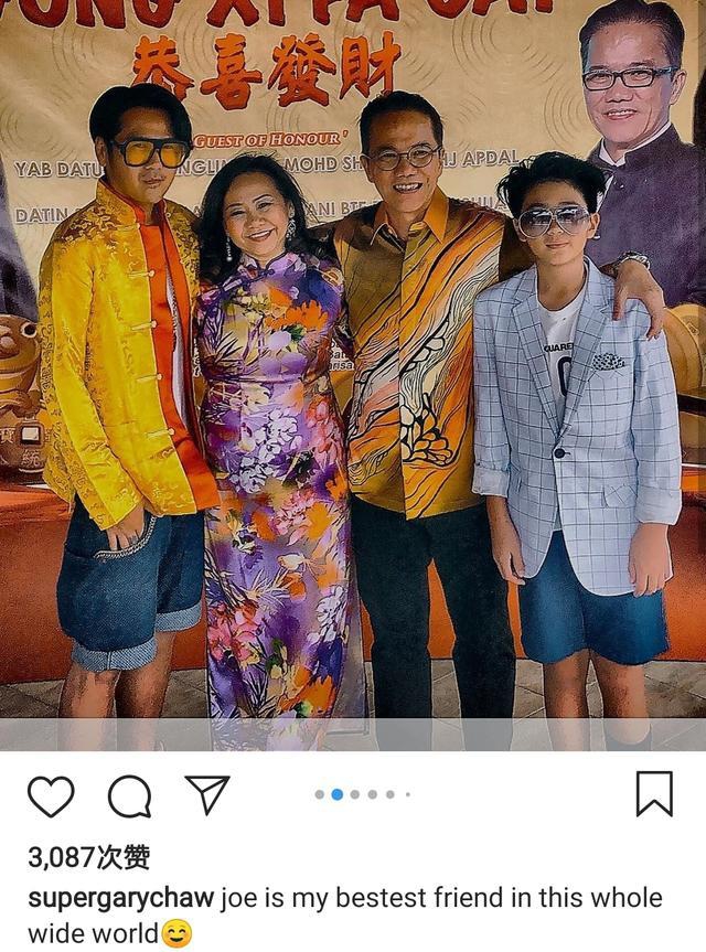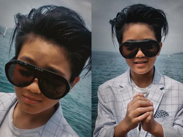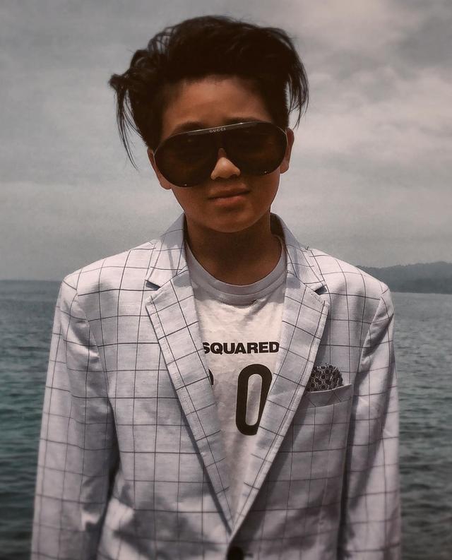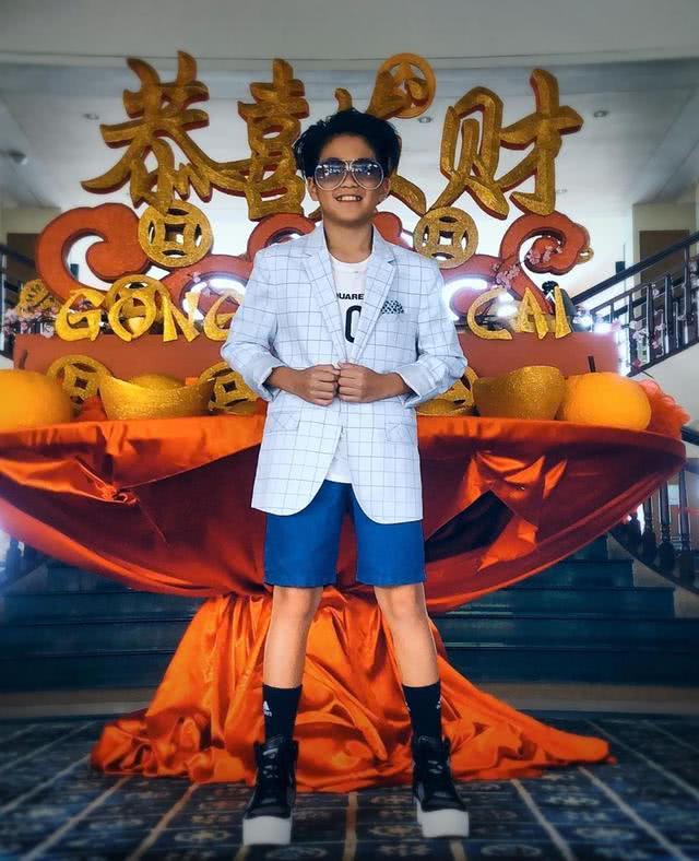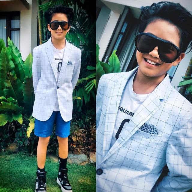 照片中,11岁的Joe穿着西装,风格嘻哈,像极了爸爸曹格。