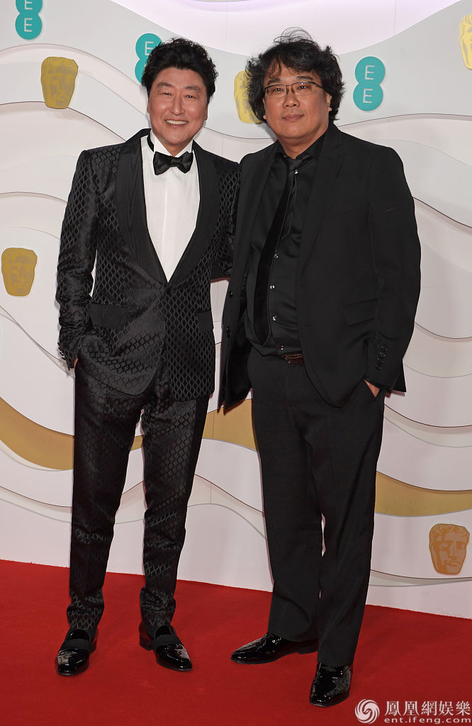 奉俊昊、宋康昊同框亮相,两人西装革履笑容灿烂。