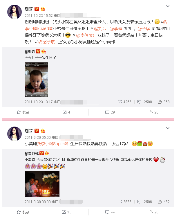 尽管刘芸极力否认跟李小璐是姐妹,可翻看她的微博,两人可是互动的很频繁,另外,李小璐组织的各种派对里都能看到她的身影,两人还一同给自己的儿子女儿庆生......有图有真相还否认姐妹关系,刘芸也是够狠的!