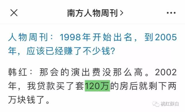 做公益需要资金,但谁的钱都不是大风刮来的。 韩红2002年成了房奴,贷款买了套120万的房,之后就剩下两万块钱。