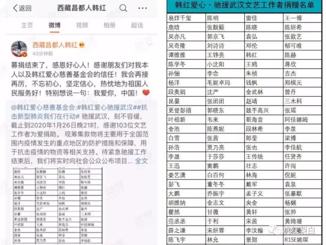 这次跟着韩红献爱心的,除了表格上的明星好友,还有千千万万个捐款给韩红爱心基金会的普通网友。