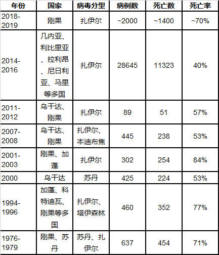 埃博拉病毒往年疫情(不完全统计)