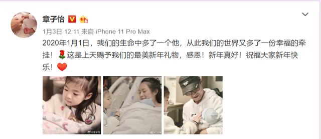 2月2日,章子怡晒出了二胎儿子的照片,庆祝满月,配文是对儿子的爱和对武汉疫情的关注和忧