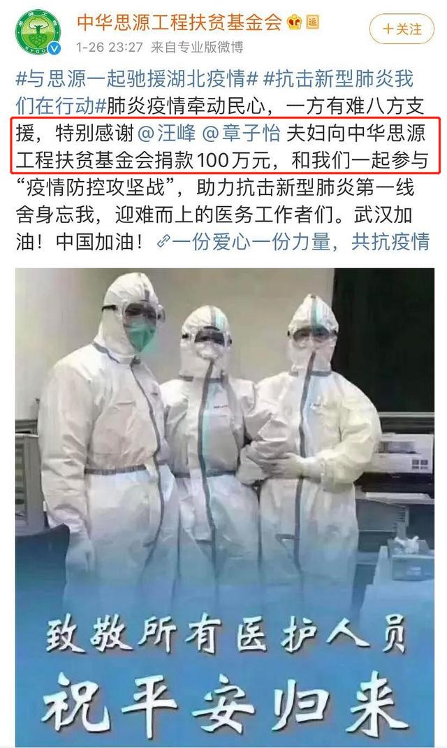 这个捐款数目在明星中算是不少了,章子怡这段时间都在美国坐月子,汪峰一直陪伴在旁,虽然是远在他国,但两人在知道武汉疫情的发展后,非常迅速的捐款,支持武汉。