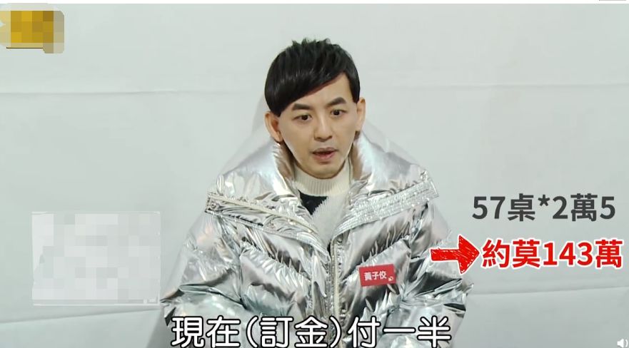 一旁的记者给我们算了一下大概的费用,黄子佼这场婚礼办完仅仅是设宴一项费用就高达143万台币!这些还不算酒店场地费用、鲜花、人工以及红包等等的开销。