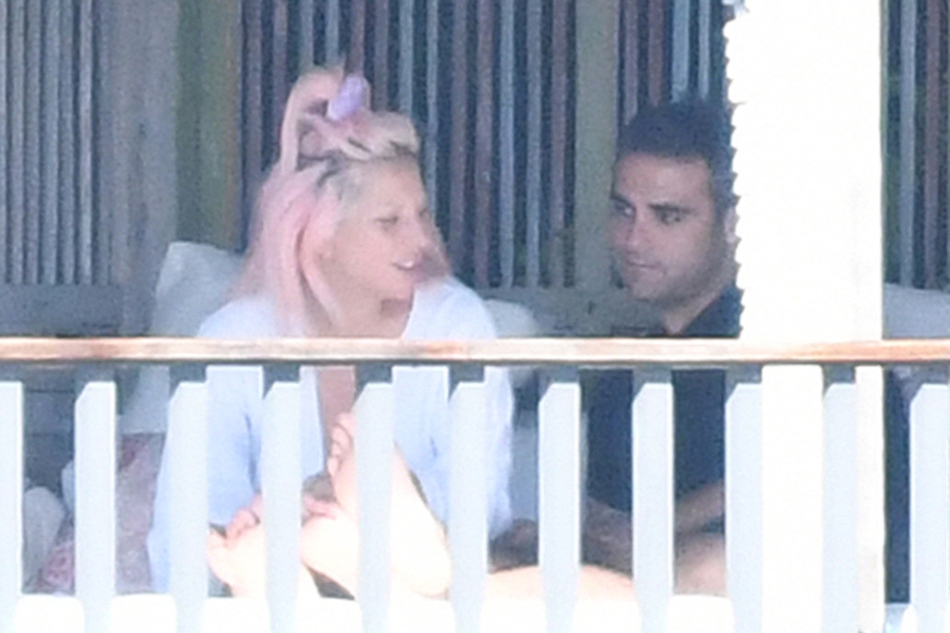 2月1日,在迈阿密的某酒店阳台,Lady Gaga被拍到与一神秘男子亲密接吻,聊天对视画风甜蜜,疑似新男