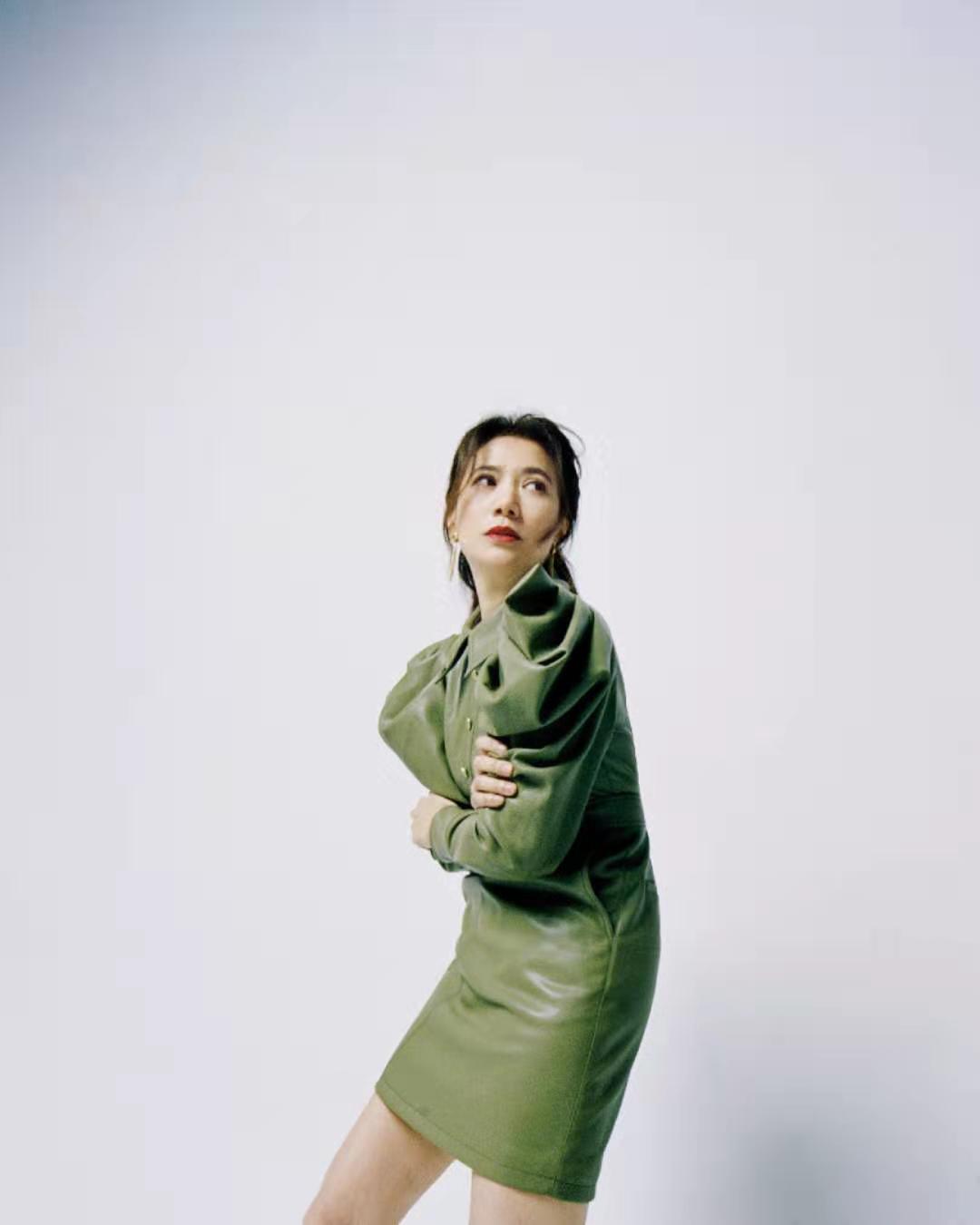 十分挑人的绿色裙子,袁咏仪也能驾驭得很好。
