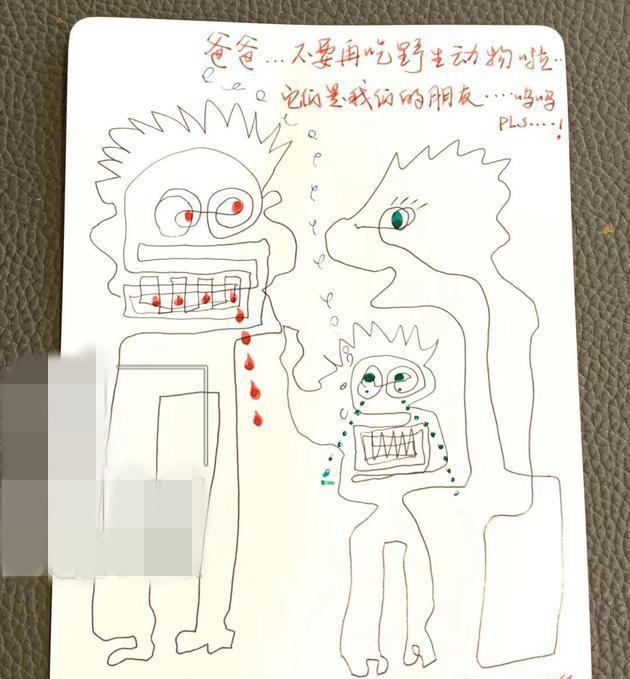 近日,有媒体曝光了巩俐专门为肺炎疫情作的一幅画。在巩俐的画中,右边是爸爸的形象,左边是一个小孩子和野生动物,爸爸看着野生动物留下了口水,而小孩子则流着眼泪哭求爸爸不要吃野生动物。在这幅画的左上角处,巩俐还用文字标注了21个字,是小孩子对爸爸说的话:爸爸,我们不要再吃野生动物啦,它们是我们的朋友……呜呜……
