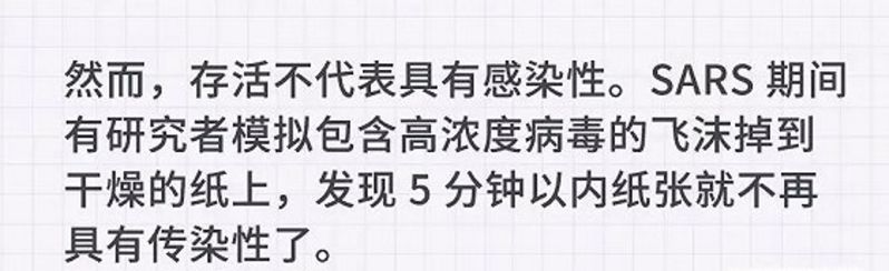 因为这次新冠病毒和当年的SARS病毒有一定的相似度,所以我们可以SARS病毒的存活时间作为一个参考依据。SARS病毒在干燥塑料玻璃等物品表面可存活2-3天。在尿液、粪便、血液中都有一定的存活时间。