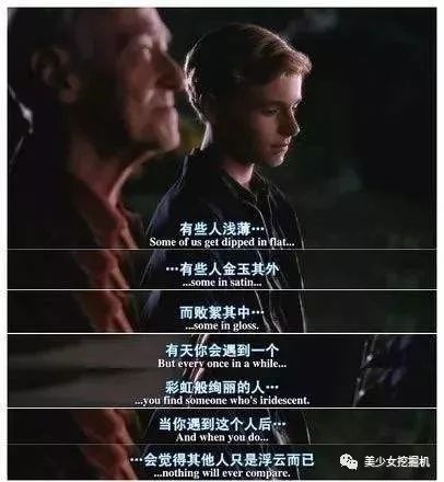 “有些人浅薄,有些人金玉其外败絮其中,但是总有一天,你会遇到一个彩虹般绚丽的人,让你觉得之前遇见的人,都只是浮云而已。”