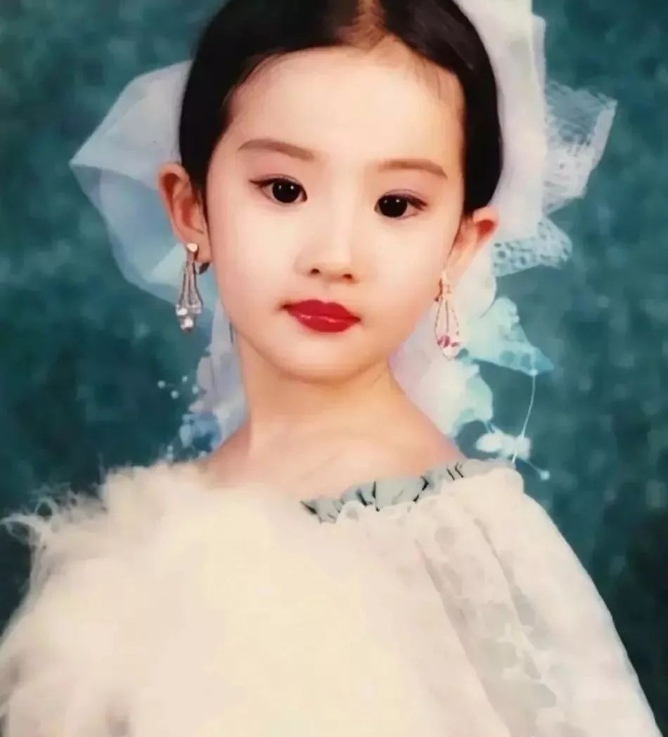 既然是天选之女,小时候也是萌翻众人,婴儿肥加无辜狗狗眼,就占据大半张脸。