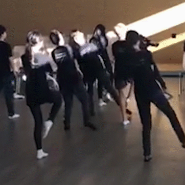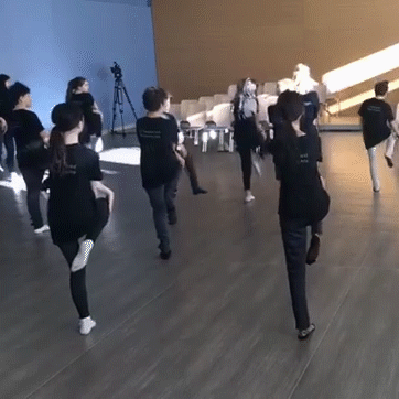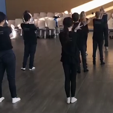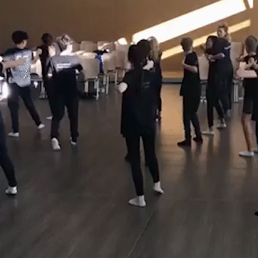 站后排认真学动作。